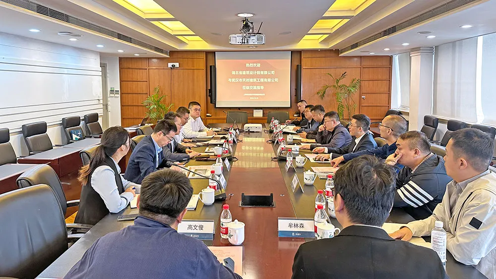 10月10日,湖北省建筑設(shè)計院有限公司一行到上海建科院調(diào)研交流。湖北省建筑設(shè)計院有限公司黨委副書記、執(zhí)行總經(jīng)理姚欣,武漢城投房產(chǎn)集團有限公司黨委委員、副總經(jīng)理,武漢市天時建筑工程有限公司黨支部書記、董事長趙征,上海建科院黨委書記、執(zhí)行董事楊建榮,副總經(jīng)理邢云出席會議。上海建科院市場發(fā)展部與結(jié)構(gòu)所相關(guān)負責(zé)人參會。會議由邢云主持。